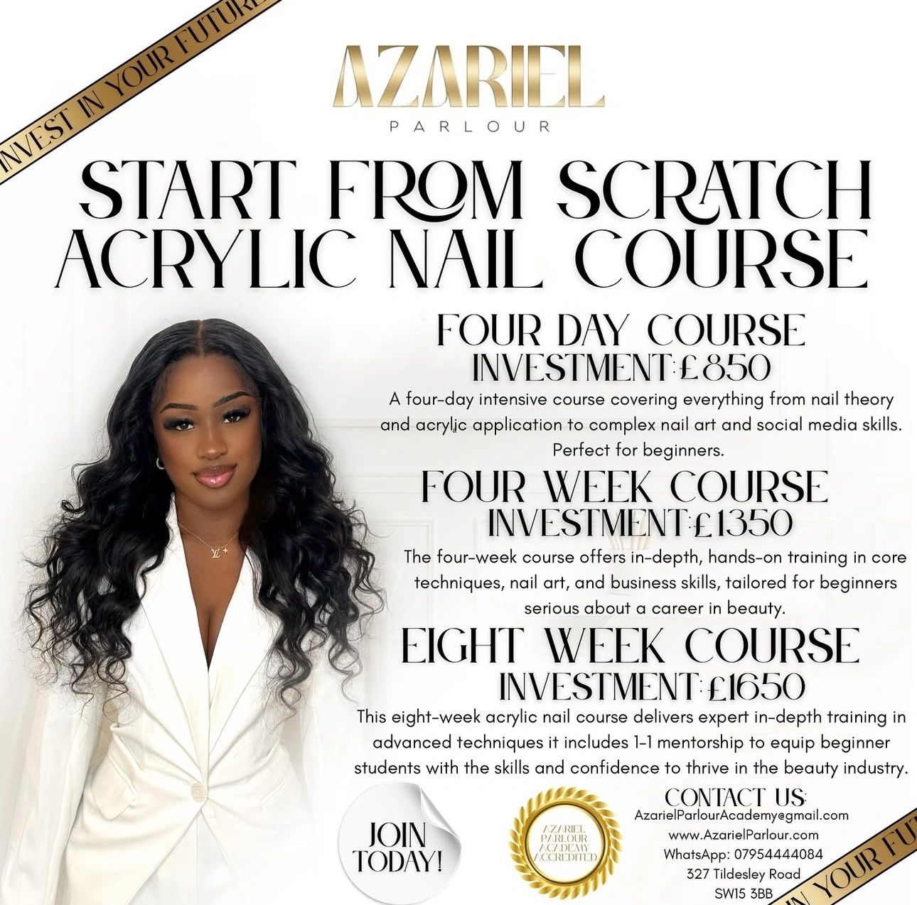 Master the essentials with our Four Day Start From Scratch Acrylic Nail Course. Learn everything from nail theory and perfect prep to acrylic beads, shaping, and stunning nail art. Ideal for beginners ready to build confidence and start a career in nails.